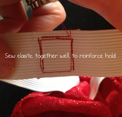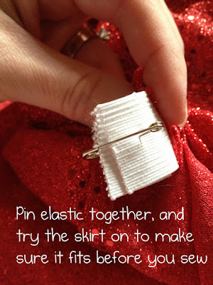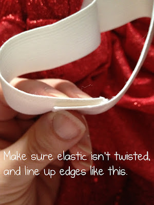 | If you're making a larger skirt, make sure you allow an extra inch or so of elastic to overlap like this |