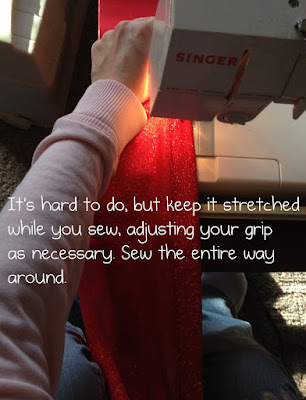 | This next part is the hardest part of the whole thing. You're going to sew through the fabric and elastic, WHILE STRETCHING THE ELASTIC inside of the fabric. |